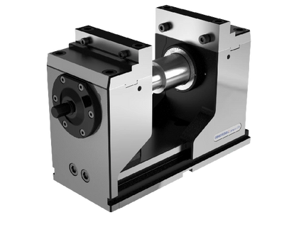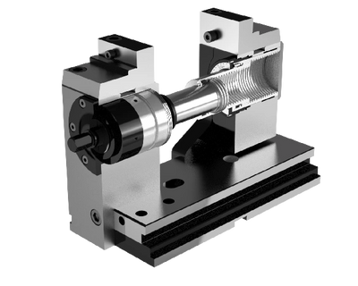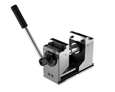 Raised "true" 5-axis power vise. Vise has a mechanical intensifier with infinite force adjustment-nut and works with a tension draw-bar. The sturdy and fully sealed clamping system is precise and offers high repetition accuracy. The modular design offers many clamping options.