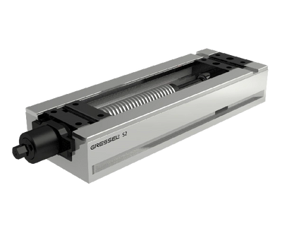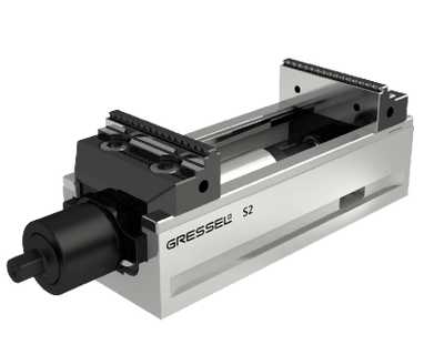 Gressel S2 single vice in mechanical variant with high accuracy and clamping force as well as extremely slim design. Simplest handling with 160° lever quick clamping device, clamping range quick adjustment and simple clamping thanks to a clamping principle that applies tension.
